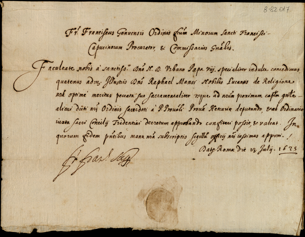 Processi diversi in varie cause dei Padri Cappuccini e Zoccolanti appartenenti all'eccellentissimo cardinal S. Onofrio