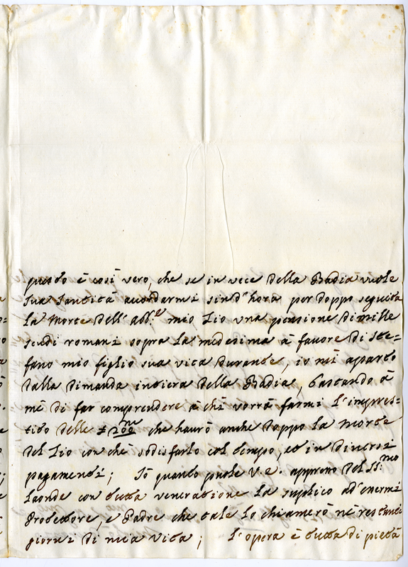 Trovandosi in gravi difficoltà economiche chiede di essere esentato da un pagamento di un debito per difesa per proprio buon nome e di poter avere una badia in beneficio