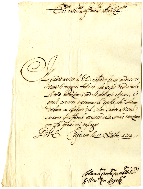 Lettera del vescovo di Vigevano ad Annibale Albani (1704 dicembre 10)