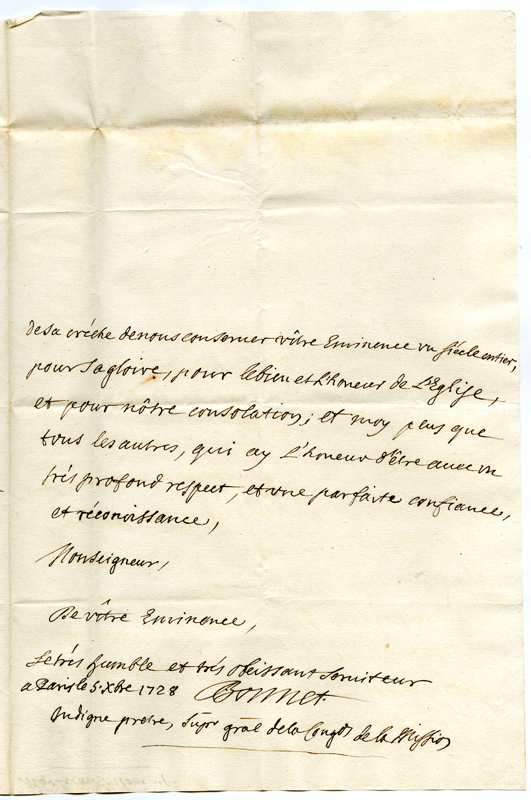 Lettera di Bonnet indegno prete al cardinale Annibale Albani (1728 dicembre 5)