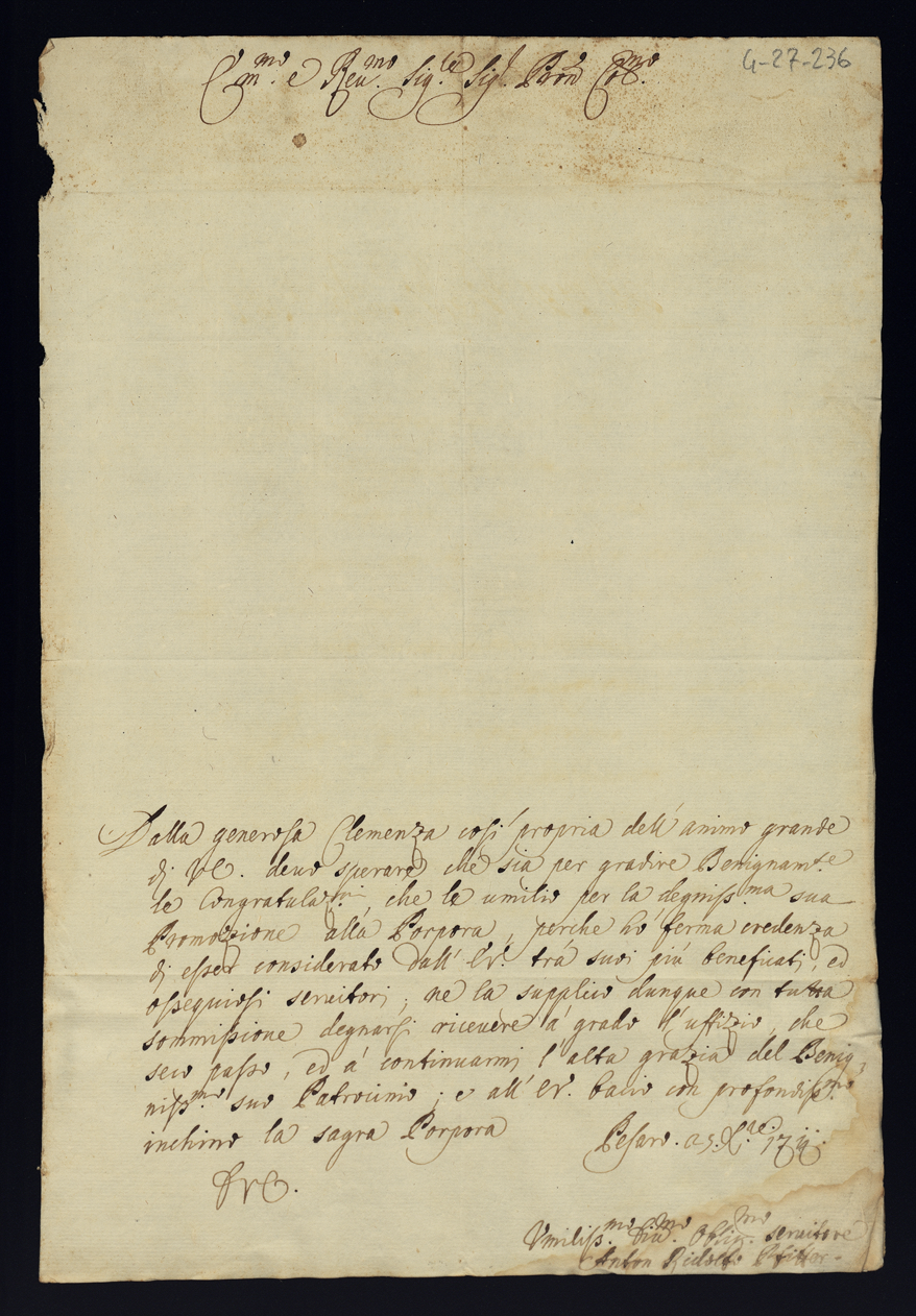 Lettere di congratulazioni per la promozione di Sua Eccellenza al Cardinalato. Tomo II