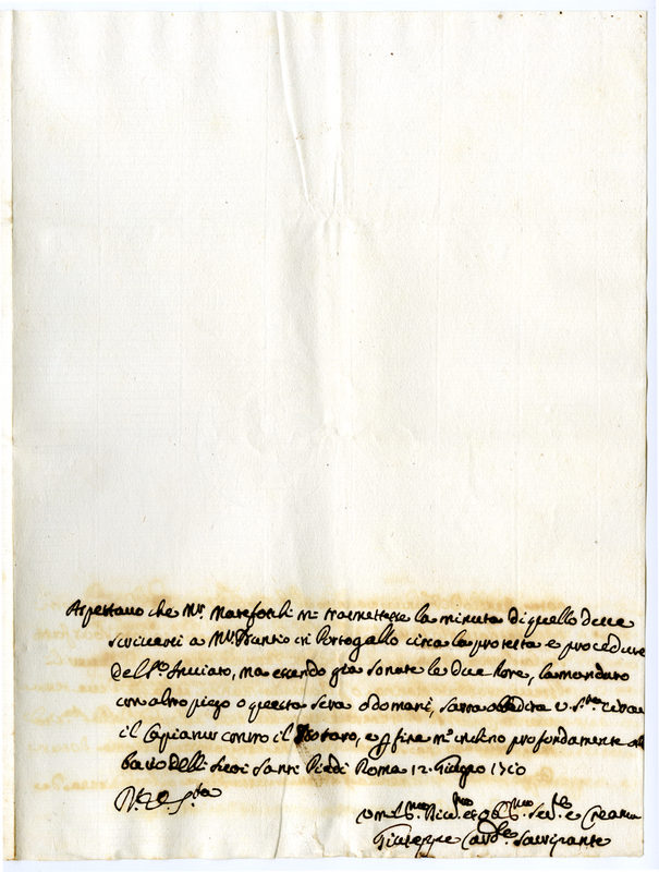 Lettera del Cardinale Sacripanti a Clemente XI (1710 giugno 12)