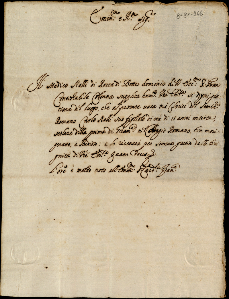 Memoriali diversi diretti al signor cardinale S. Onofrio