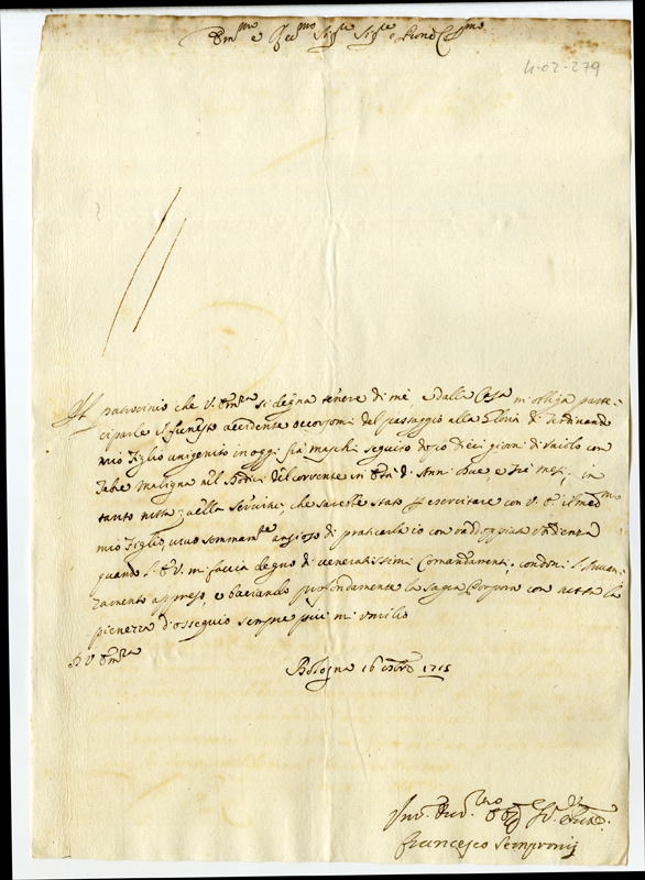 Lettera di Francesco Semproni al cardianle Annibale Albani (1715 ottobre 16)