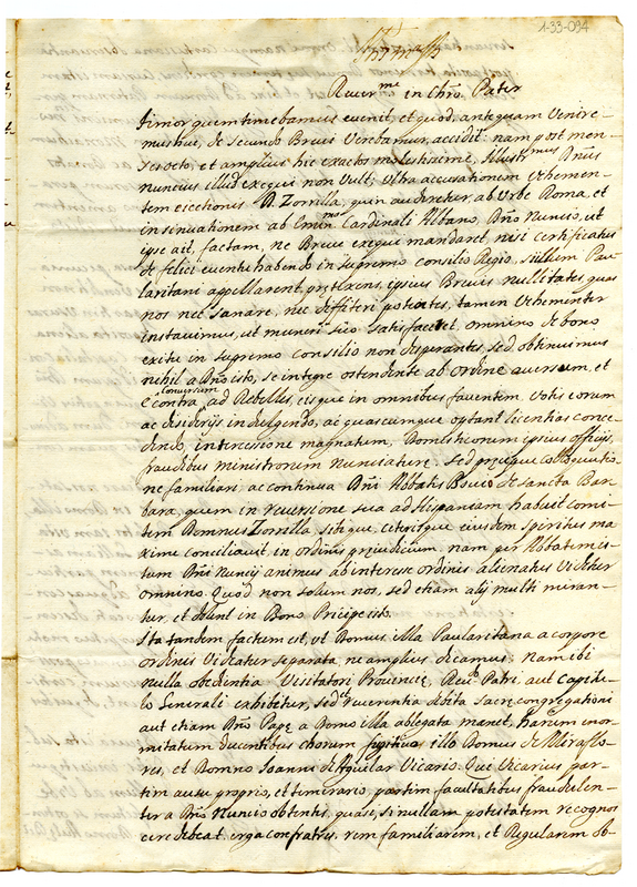 Lettera di frate Giuseppe (1695 maggio 21)