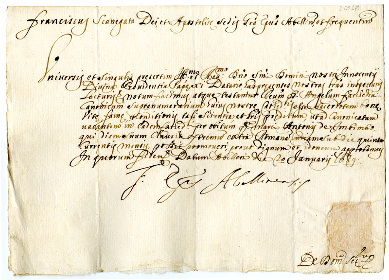 Attestato a favore di don Angelo Facchedini (1689 gennaio 20)