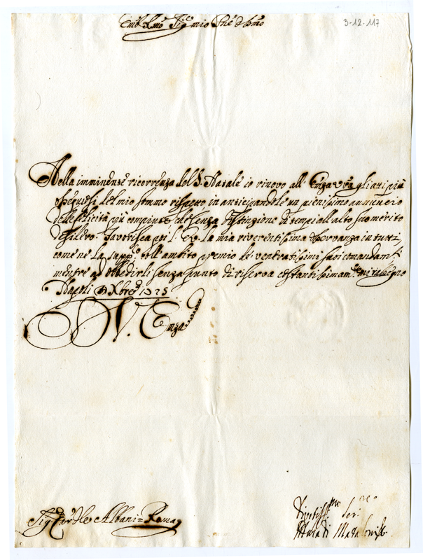 Lettera del duca di Maddaloni al cardinale Annibale Albani (1725 dicembre)