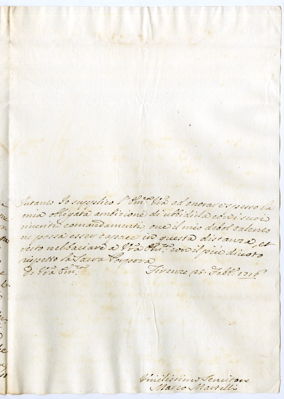 Lettera di Marco Martelli al Cardinale Annibale Albani (1716 febbraio 25)