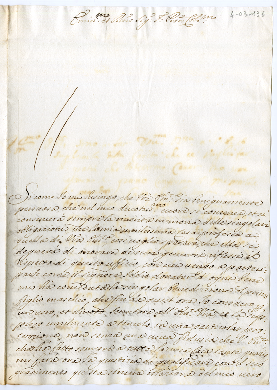 | bo.livello.titolo2 | Archivio Albani|Lettere di complimento, e di Negozio Semestre Primo|"1716 Febbraio Tom. I."|Documenti contenuti | |