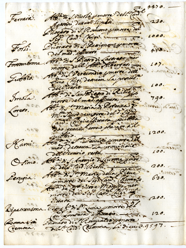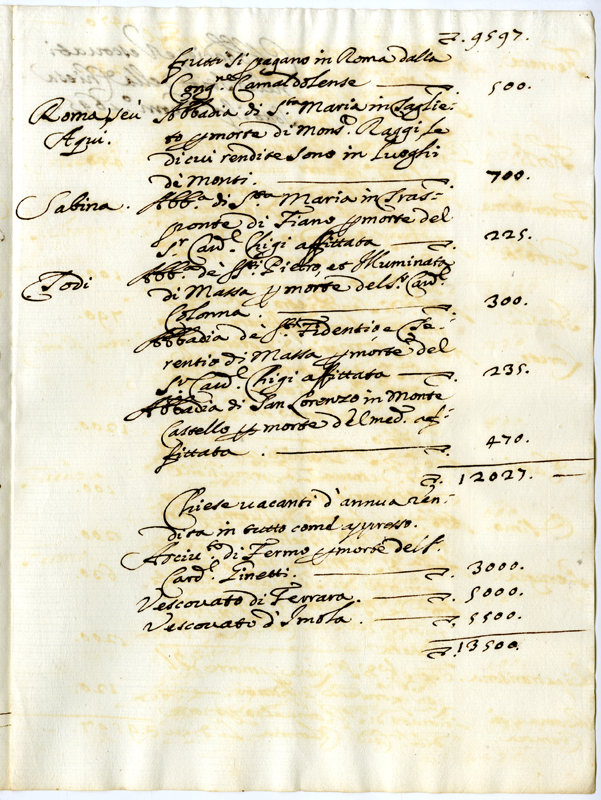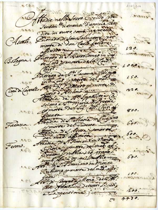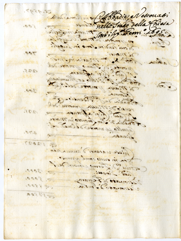 Abbadie nello Stato Ecclesiatico presentemente vacanti d'annue rendite in tutto, come appresso (1695 gennaio 1)