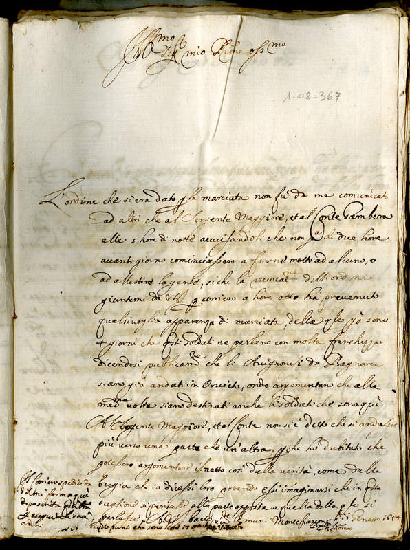 Lettera di monsignor Borromeo Giberto a Malatesta Albani (1644 gennaio 11)