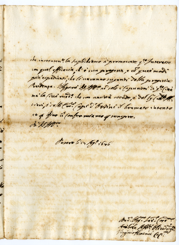 Lettera di Annibale degli Abbati Olivieri e di Virginio Almarici Caporioni al cardinale Altieri (1676 agosto 13)