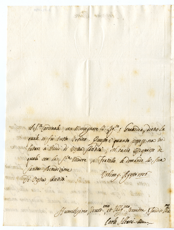 Lettera di Carlo Albani a papa Clemente XI (1706 agosto 9)