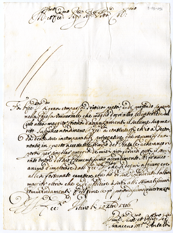 Lettera di Francesco Maria Antaldi ad Annibale Albani (1706 dicembre 10)
