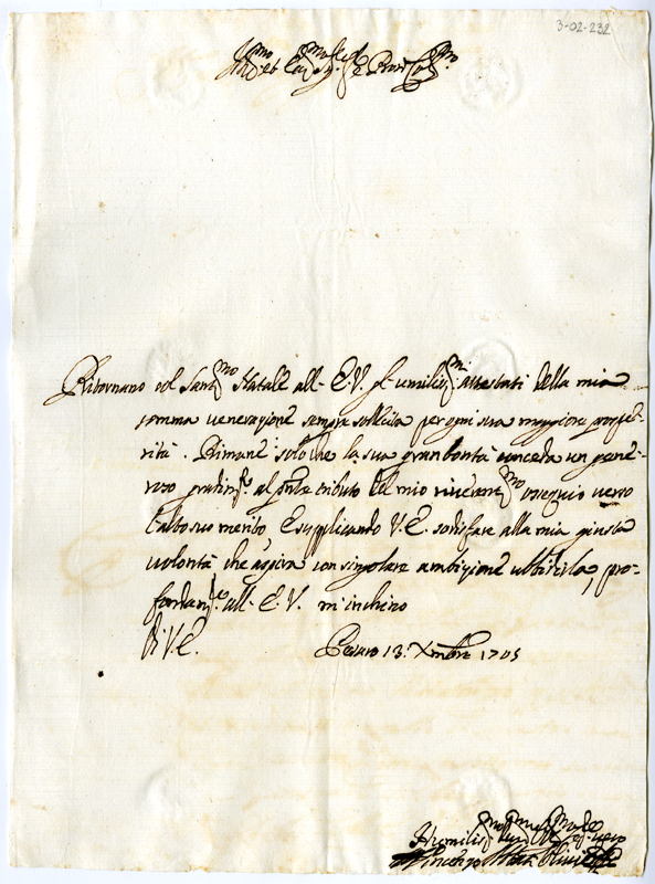 Lettera di Vincenzo Abbati Olivieri ad Annibale Albani (1705 dicembre 13)