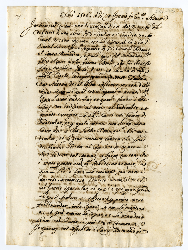 Copia di lettera di Antonio della Gatta a Filippo Albanese (1506 gennaio 20)