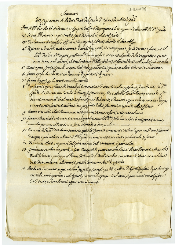 Sommario de capi contro li padri e frati del convento d'Ofena di minori conventuali (1700-1721)