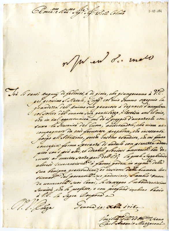 Lettera di Carl'Antonio Mazzaroni ad Annibale Albani (1718 dicembre 10)