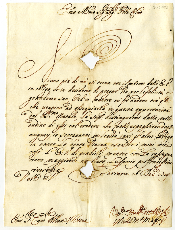 Lettera di Nicolò Maria Maffei al cardinale Annibale Albani (1719 dicembre 8)