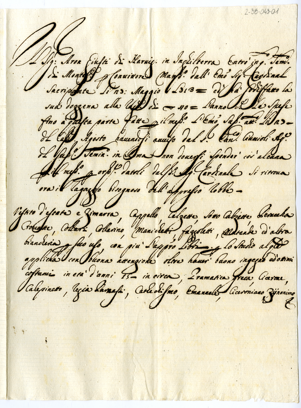Nota di quanto occorre al convittore Aronne Giusti (1715)