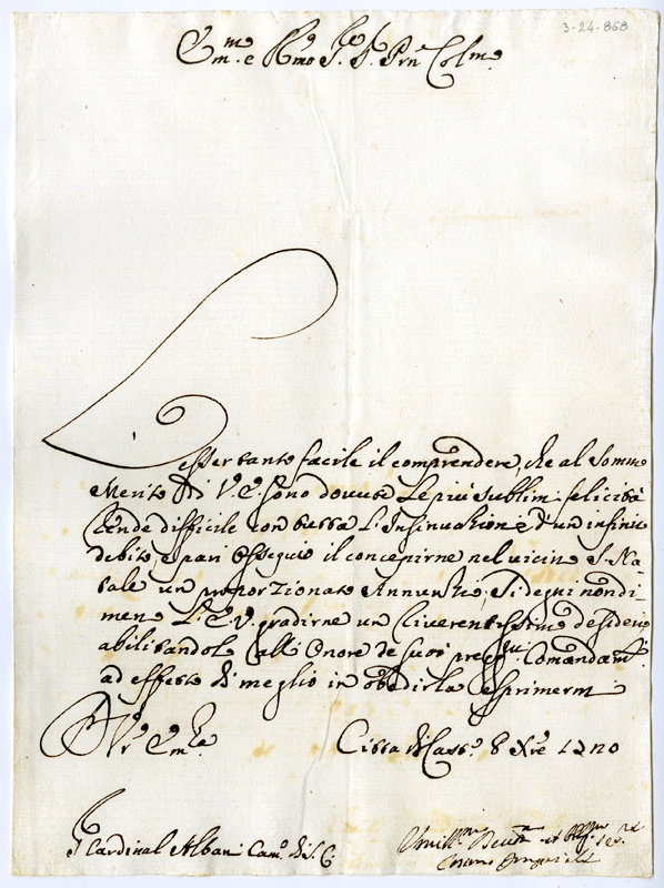 Lettera di Cosimo Imperiali al cardinale Annibale Albani (1720 dicembre 8)