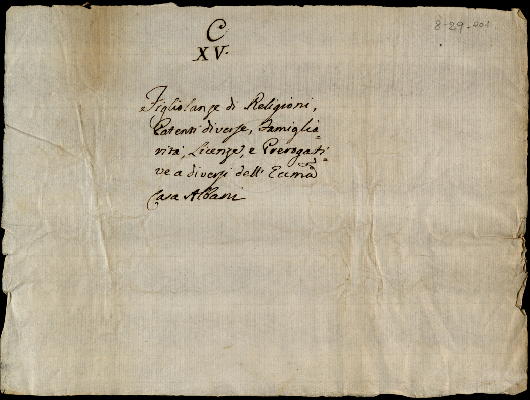 Figliolanze di religiosi, patenti diverse, famigliarità, licenze e prerogative a diversi dell'eccellentissima Casa Albani