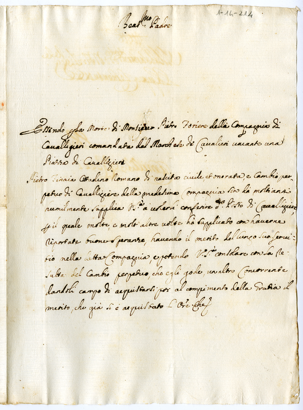 Pietro Finaia chiede al pontefice un posto da cavalleggero