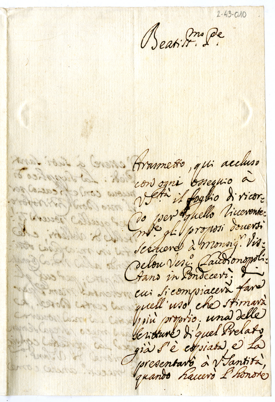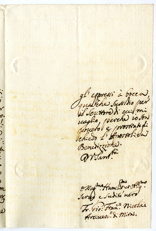 Lettera dell'arcivescovo di Mira Giovanni Francesco Nicolai a papa Clemente XI (1700-1721)