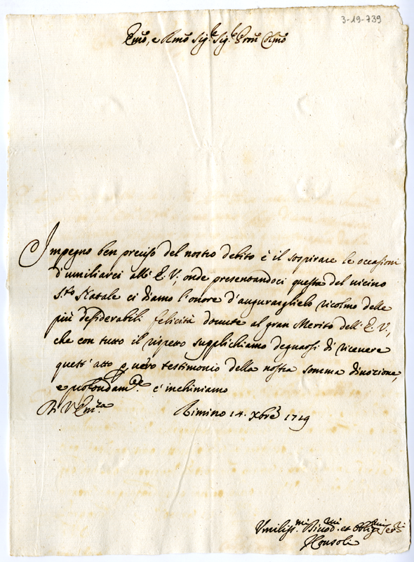 Lettera dei consoli di Rimini ad Annibale Albani (1719 dicembre 14)