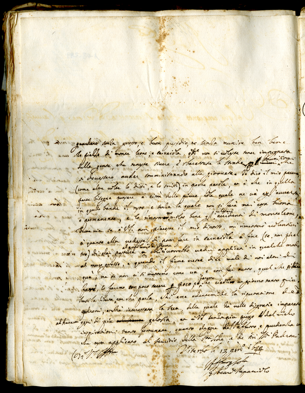 Lettera del cardinale Rapaccioli Francesco Angelo a Malatesta Albani (1644 gennaio 13)