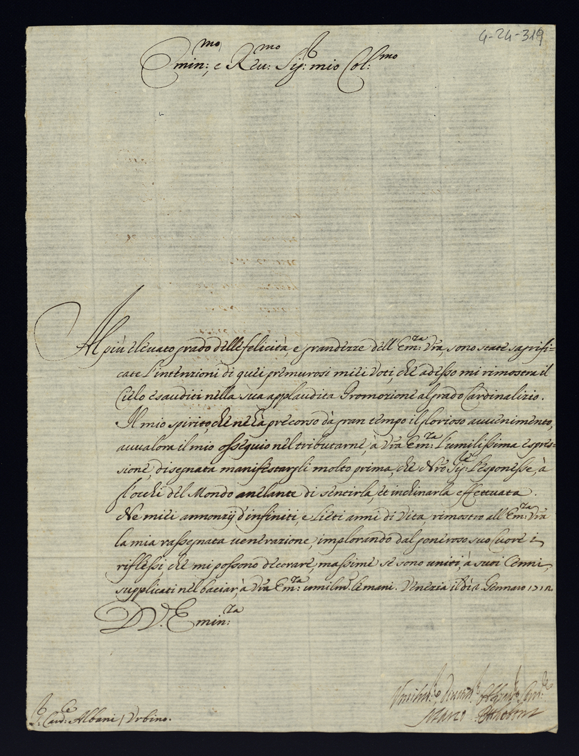 Lettere di congratulazioni per la promozione di sua eccellenza al cardinalato