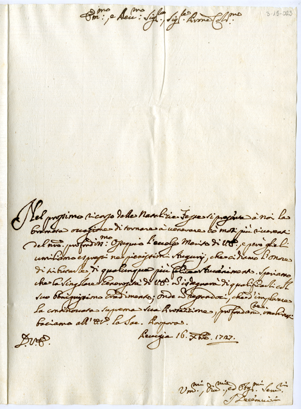 Lettera dei decemviri di Perugia al cardinale Annibale Albani (1727 dicembre 16)
