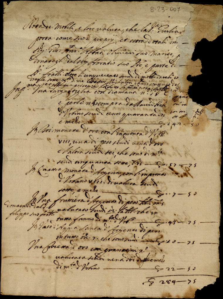 Scritture riguardanti la dote della signora Giulia Albani Olivieri