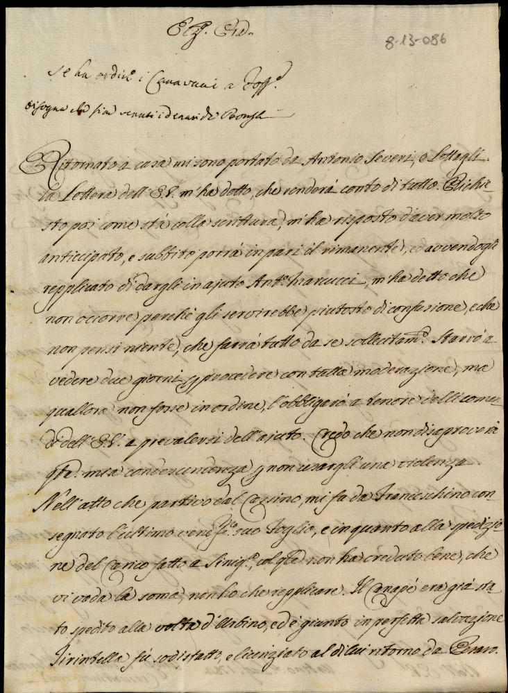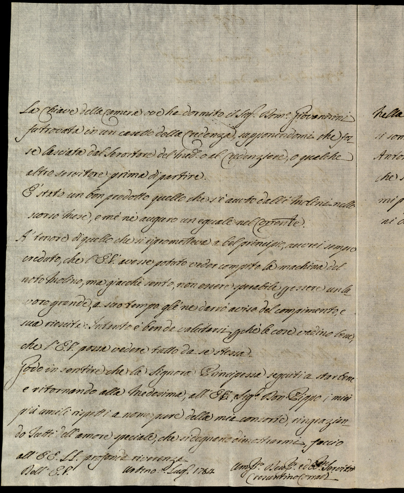 Lettere diverse ricevute in Colbordolo, Pesaro e Senigallia nel 1784