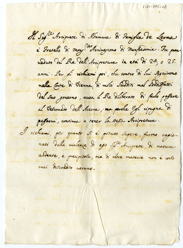 Informazioni sull'arciprete di Altamura (1700-1721)