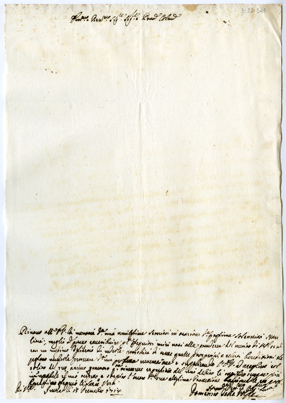 Lettera di Domenico della Volpe al cardinale Annibale Albani (1714 dicembre 15)