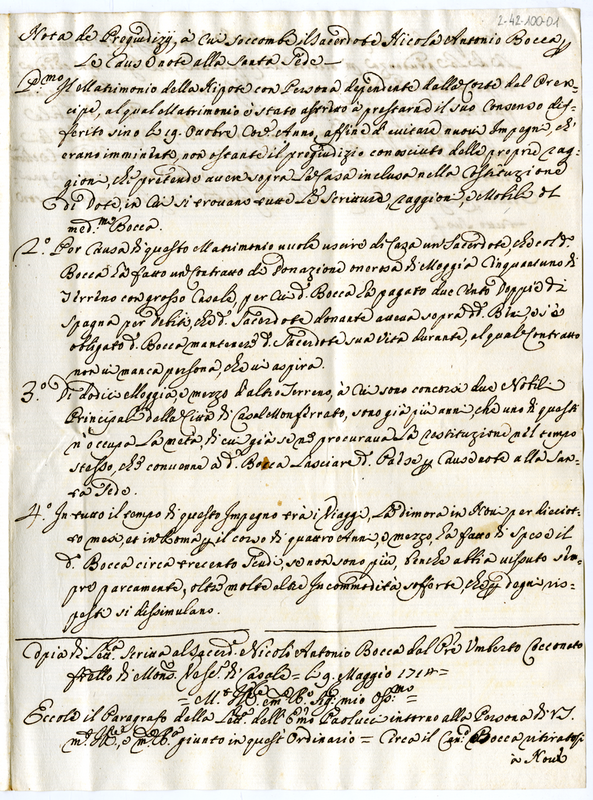 Nota de Pregiudizii, a cui soccombe il sacerdote Nicola Antonio Bocca (1700-1721)