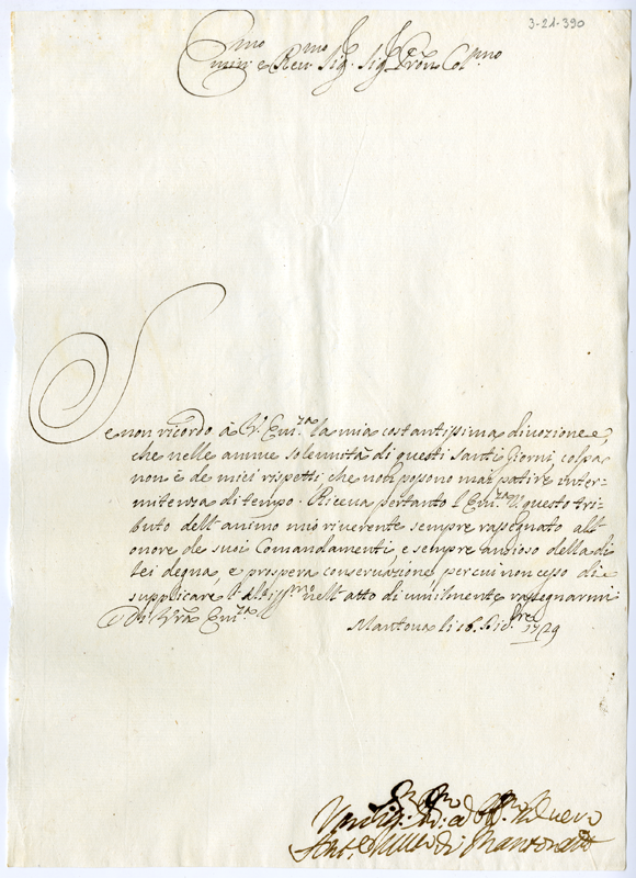 Lettera di Antonio vescovo di Mantova al cardinale Annibale Albani (1729 dicembre 16)