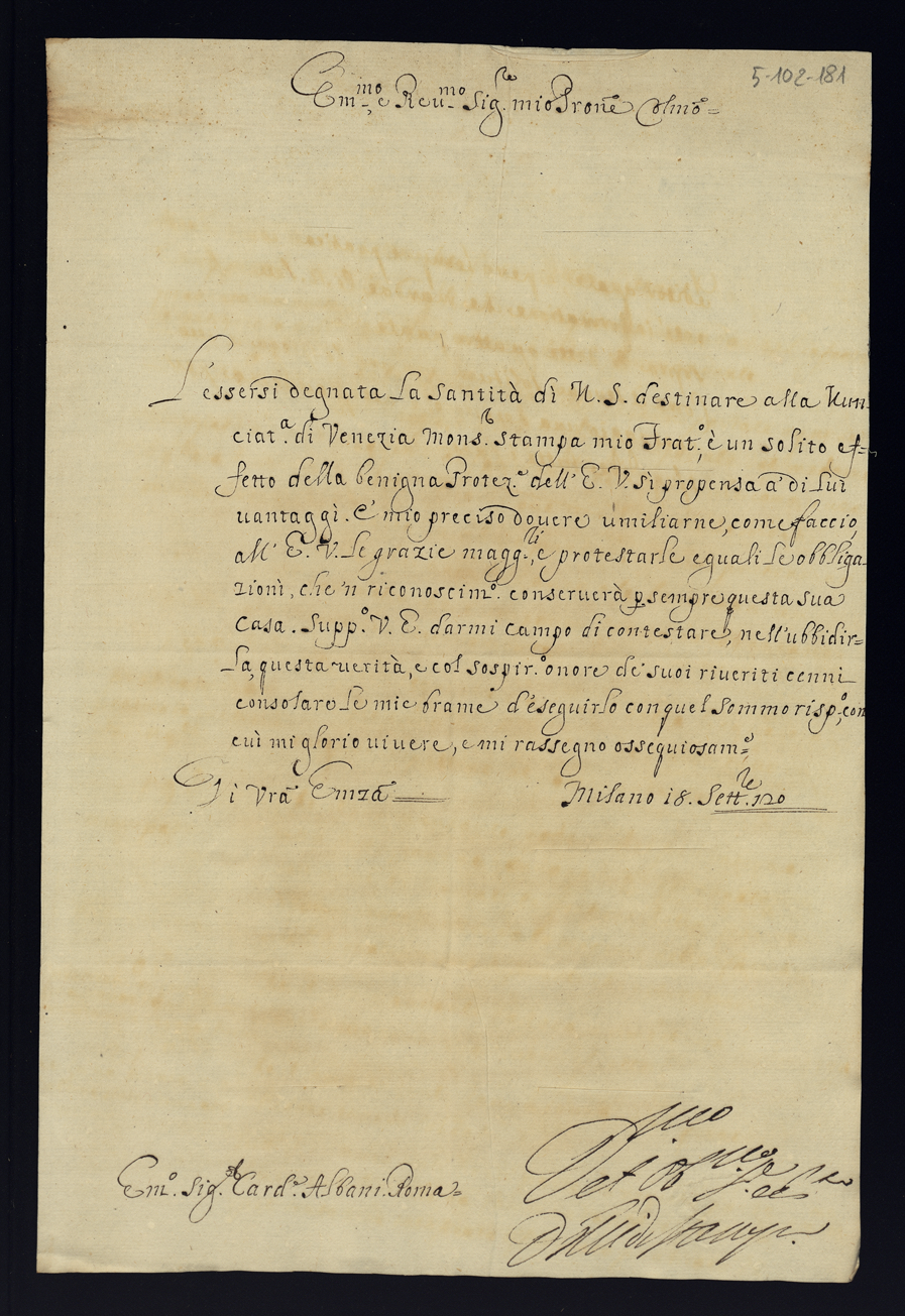 Lettere di confidenza del 1720 e 1721
