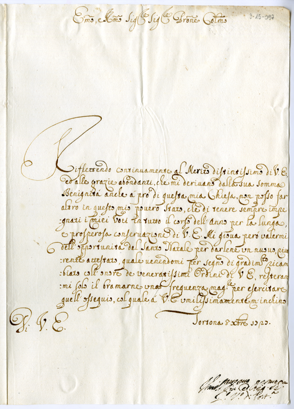 Lettera di Guido vescovo di Tortona al cardinale Annibale Albani (1727 dicembre 8)