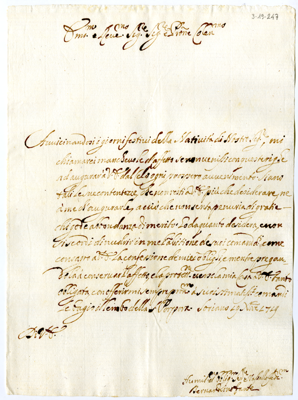 Lettera di Bernardino Fante ad Annibale Albani (1719 dicembre 19)