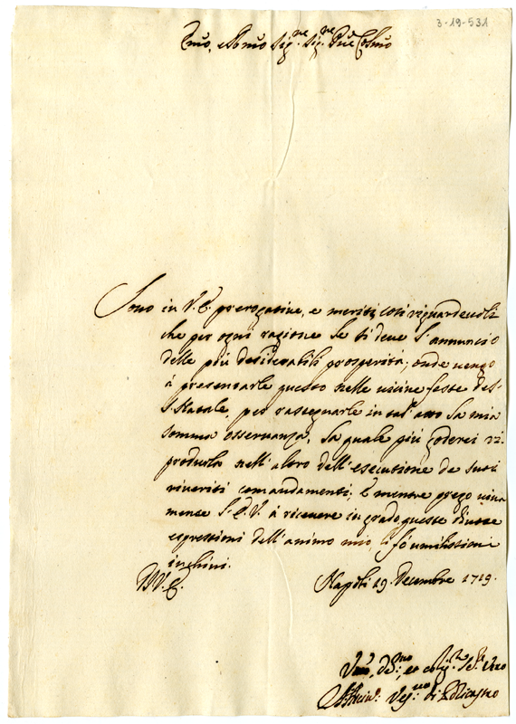 Lettera del vescovo di Policastro ad Annibale Albani (1719 dicembre 19)