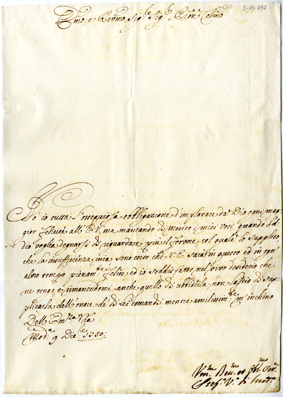 Lettera di Stefano vescovo di Modena al cardinale Annibale Albani (1730 dicembre 9)