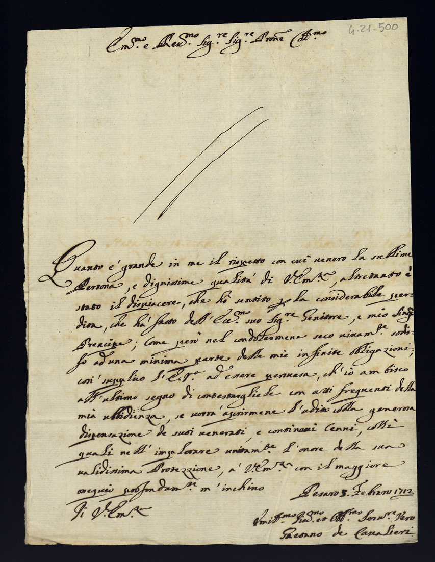 4. Lettere di condoglianza per la morte dell'eccellentissimo signor principe don Orazio Albani