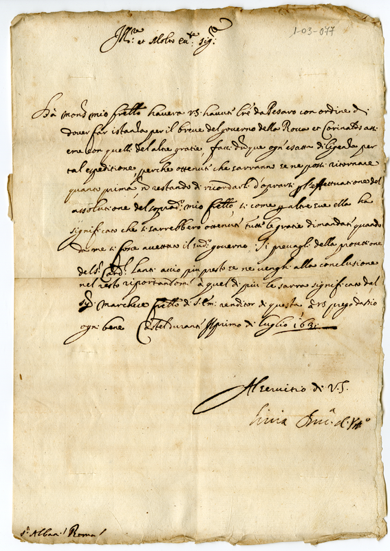 Lettera di Livia Della Rovere (1631 luglio 1)
