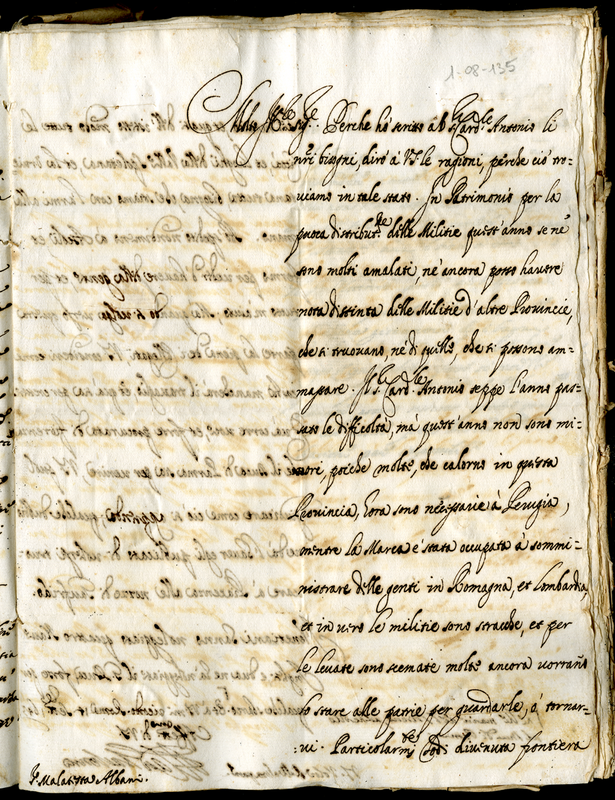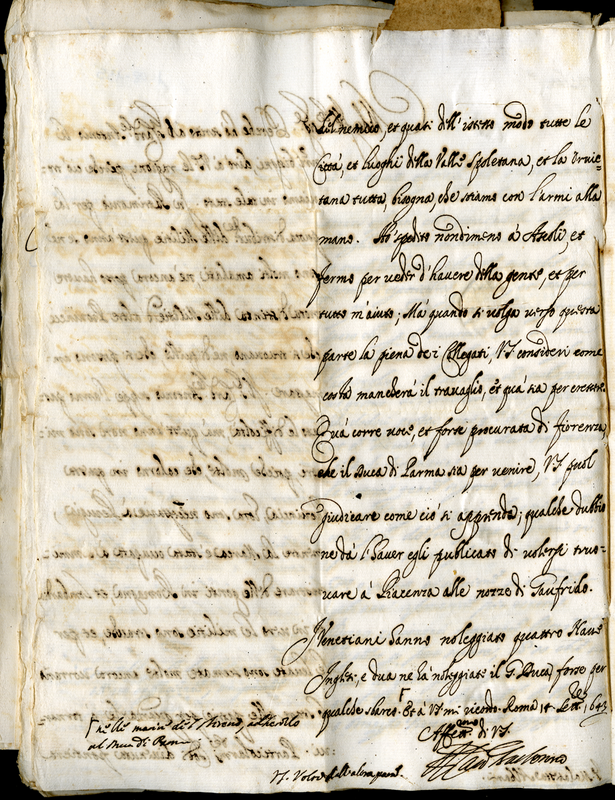 Il cardinale Barberini Francesco scrive a Malatesta circa le ragioni della difficile situazione dello Stato Romano
