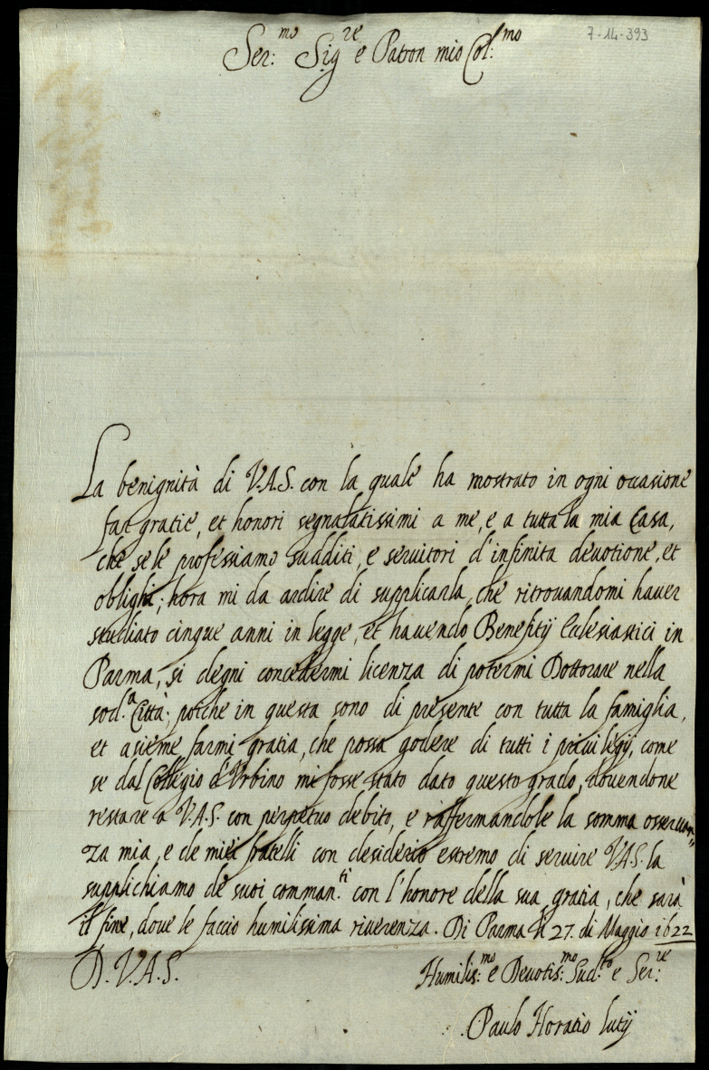 Lettere, memoriali al Serenissimo Principe d'Urbino appartenenti alla carica di segretario di Giustizia