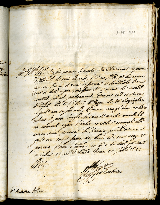 Lettera del cardinale Barberini Francesco senior a Malatesta Albani (1642 febbraio 12)