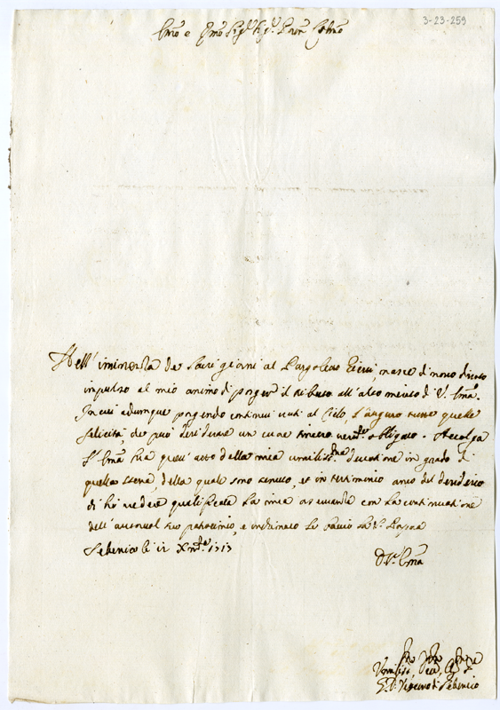 Lettera del vescovo di Sebenico al cardinale Annibale Albani (1717 dicembre 12)