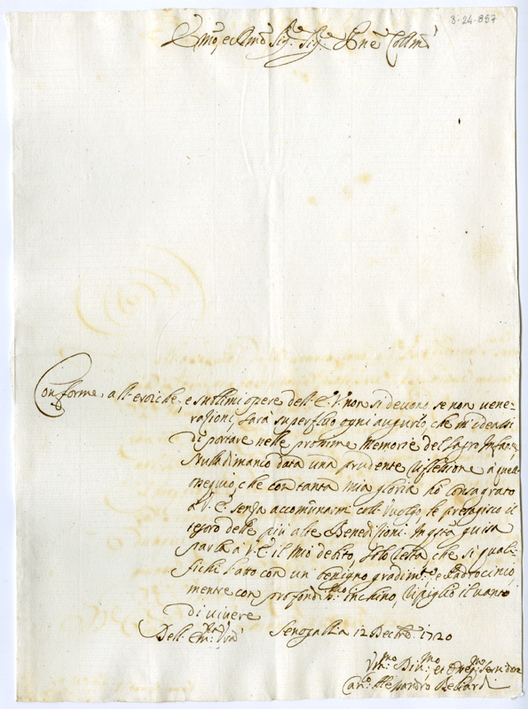 Lettera di Alessandro Beliardi al cardinale Annibale Albani (1720 dicembre 12)